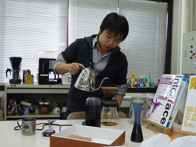 来た人にコーヒーを淹れるのは河合研究室のお決まりですが、